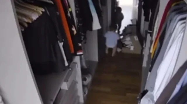 La secuencia ocurrió este lunes a las 9.41 de la mañana mientras se encontraban en su hogar. El bebé aparece caminando el vestidor de una de las habitaciones, tomó un espejo que estaba apoyado sobre el piso y comenzó a jugar.