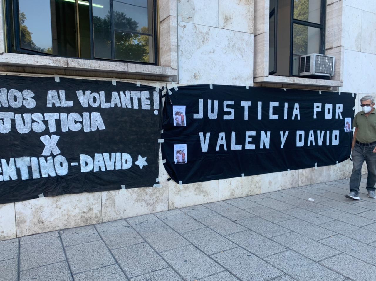 Horas antes de la resolución, familiares y allegados a la familia Pizzorno se concentraron en la puerta de los Tribunales Provinciales para pedir mayor celeridad en la investigación por la muerte de David y Valentín que iban en un Citroën cuando fueron embestido por el Renault Sandero que iba a más de 120 km/h y era conducido por Germán Schoeller, quien iba corriendo una picada junto a un amigo.