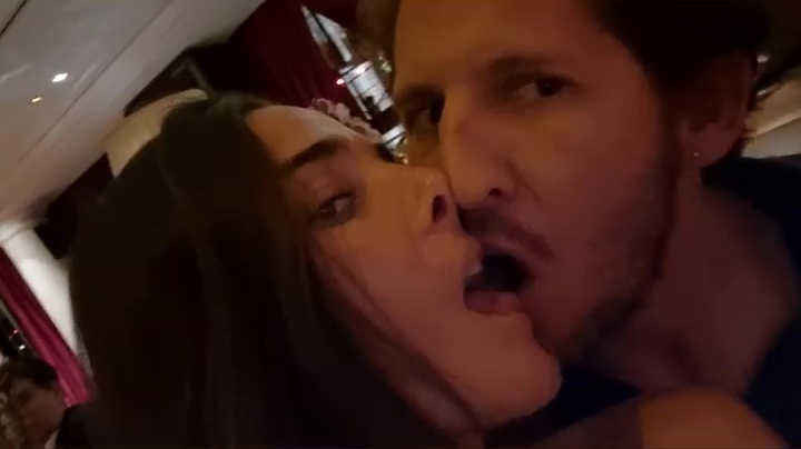 La nieta de Mirtha Legrand aprovechó uno de los pasajes de la obra para tomar su teléfono celular y grabarse en modo selfie, y darse un fogoso beso de lengua con su pareja.