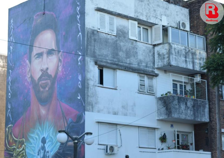 “De otra galaxia y de mi barrio” son las palabras que enmarcan el increíble mural que le hicieron a Lionel Messi. Ubicado en Azara y Buenos Aires, a metros de la escuela a la que el astro asistió, las pinceladas se despegan de la pared para adornar el lugar que lo vio hacer sus primeros jueguitos.