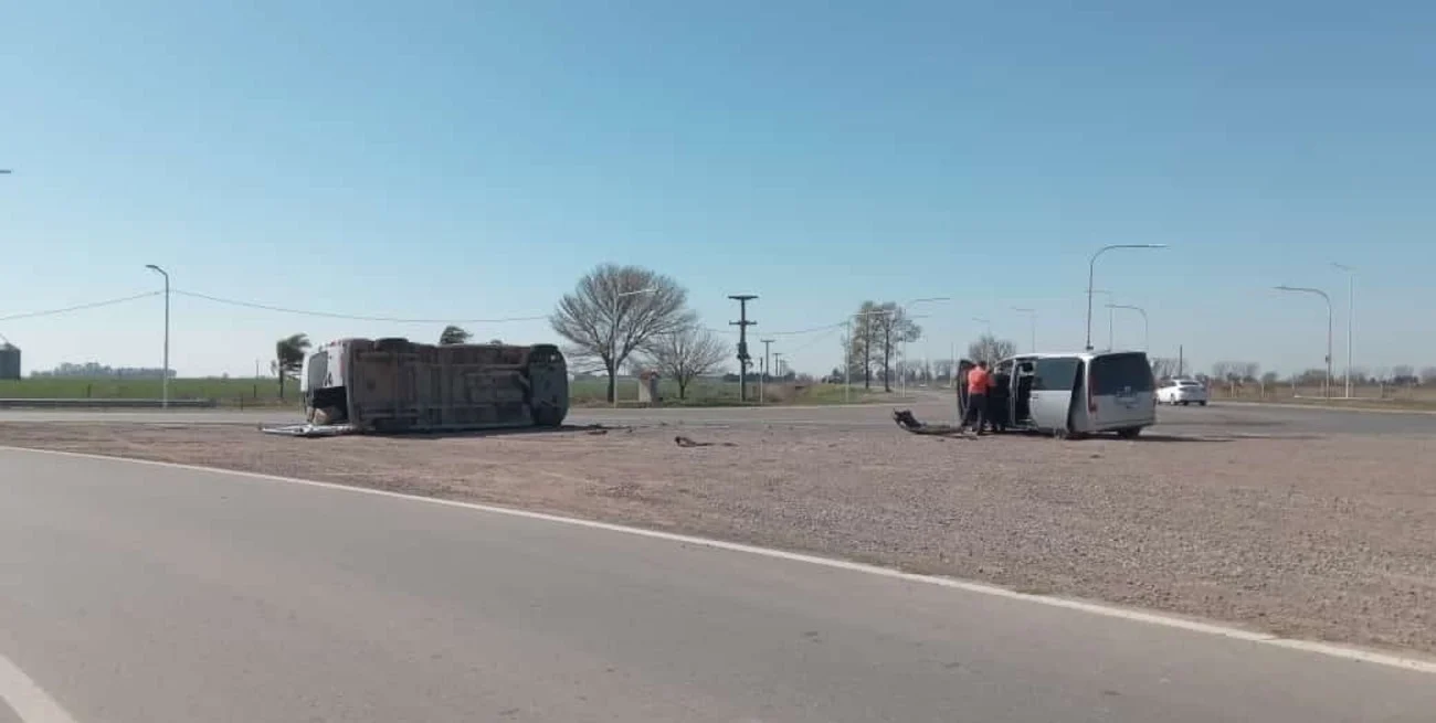 Cerca del mediodía de este lunes se registró en el peligroso cruce de las Rutas Provinciales 80s y 10s un siniestro vial entre un vehículo tipo mini van conducido por un empresario de la ciudad de Gálvez, acompañado por varias personas, contra una combi que terminó volcando.