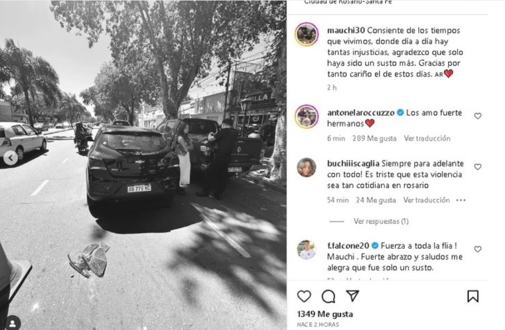 Luego del episodio, Antonela Roccuzzo publicó un mensaje para su familia. Fue a través de las redes sociales en una publicación de su primo Mauricio Scaglia. La mujer de Lionel Messi escribió: “Los amo fuerte, hermanos”.