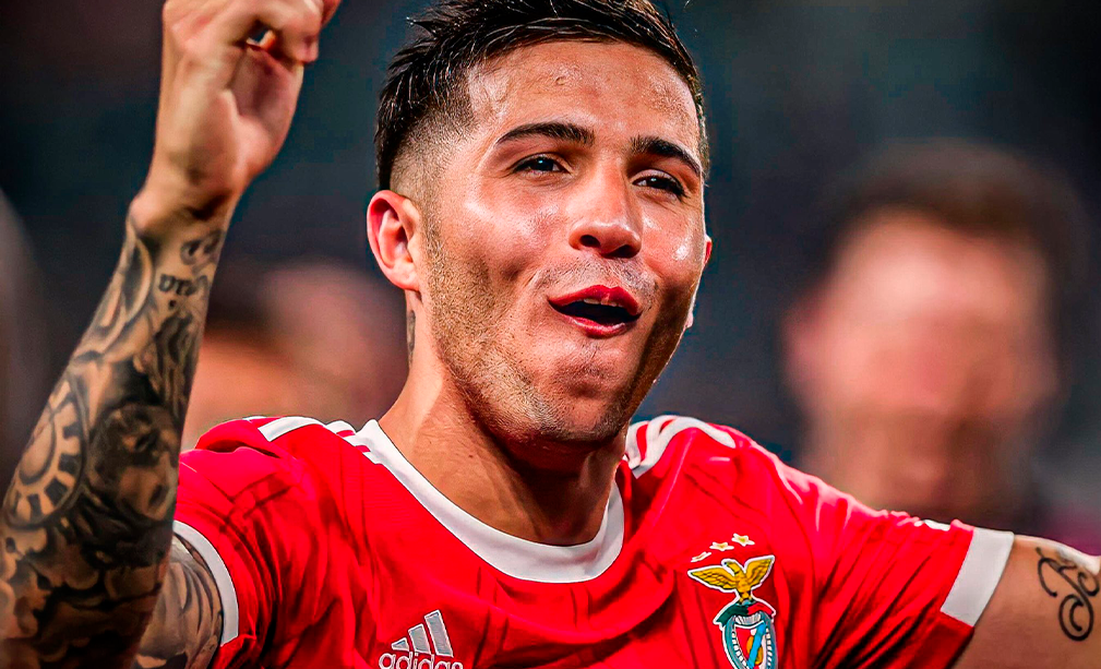 El ex River anotó el segundo gol de su equipo a los 78 minutos de juego y le envió un clarísimo mensaje para los de Lisboa. Enzo se señaló el escudo, miró a los hinchas y señaló el piso, diciendo: “Yo estoy acá”.