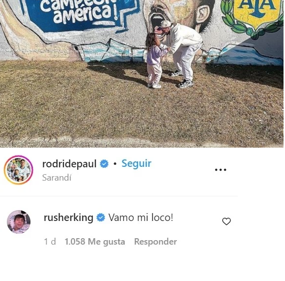 En ese marco, sorprendió que Rusherking dejara un mensaje en la cuenta de Instagram de De Paul. El ex de María Becerra comentó en un post en el que se lo ve con su hija en Sarandí: “Vamos, mi loco”.