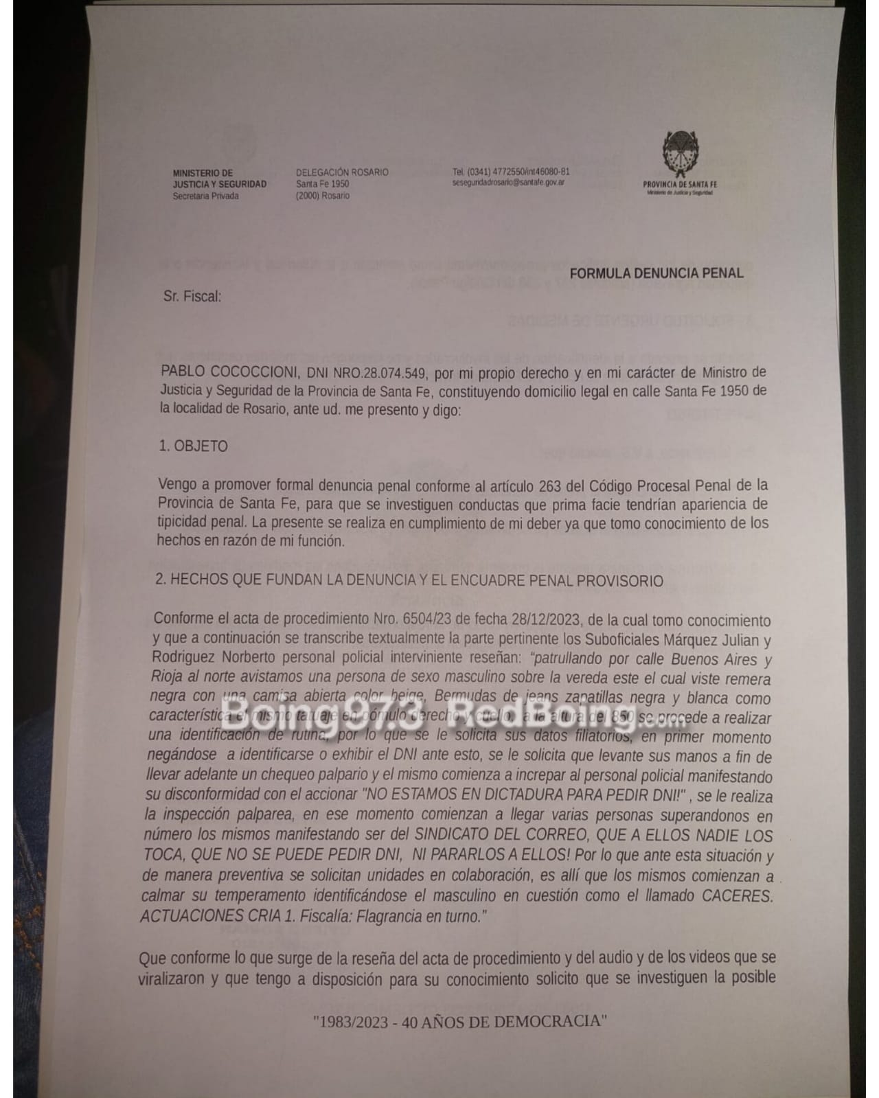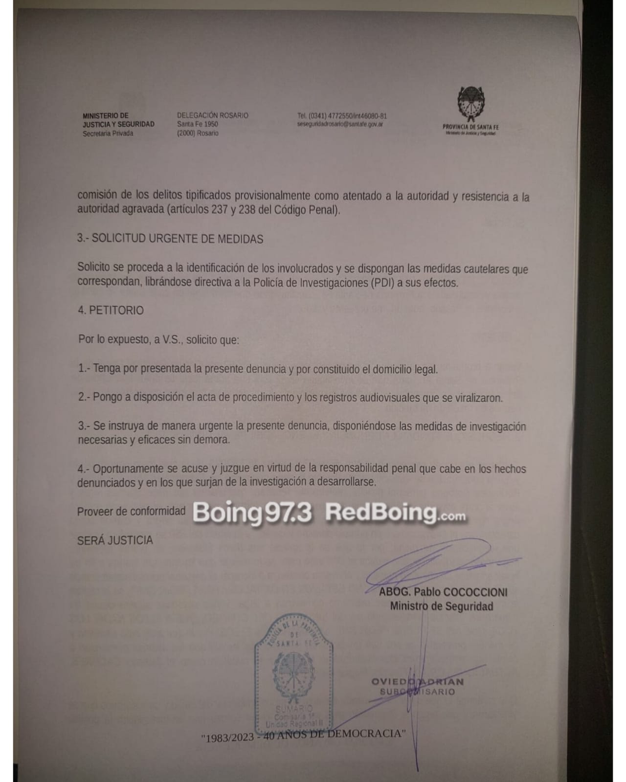 El encuentro permitió al ministro interiorizarse de primera mano como fue el episodio que vivieron los oficiales de la fuerza provincial. Por otra parte, fuentes del ministerio de Seguridad de la provincia aseguraron a Red Boing que desde “el área jurídica de la cartera formalizó una denuncia penal ante el accionar de los sindicalistas”.