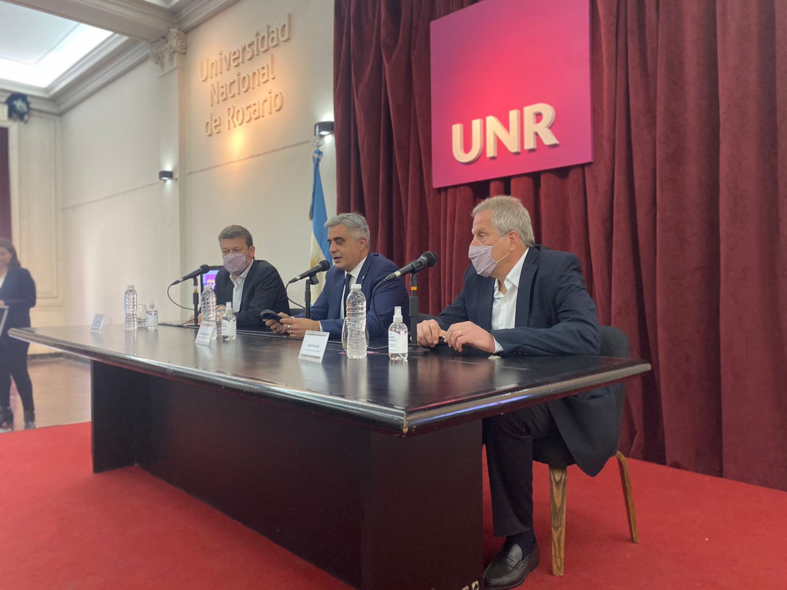 El ministro de Educación de la Nación, Jaime Perczyk estuvo en la Sede de Gobierno de la UNR junto al rector de esa casa de estudios, Franco Bartolacci firmando un convenio para el financiamiento de las Escuelas de Oficios que estarán en distintos puntos de la ciudad.