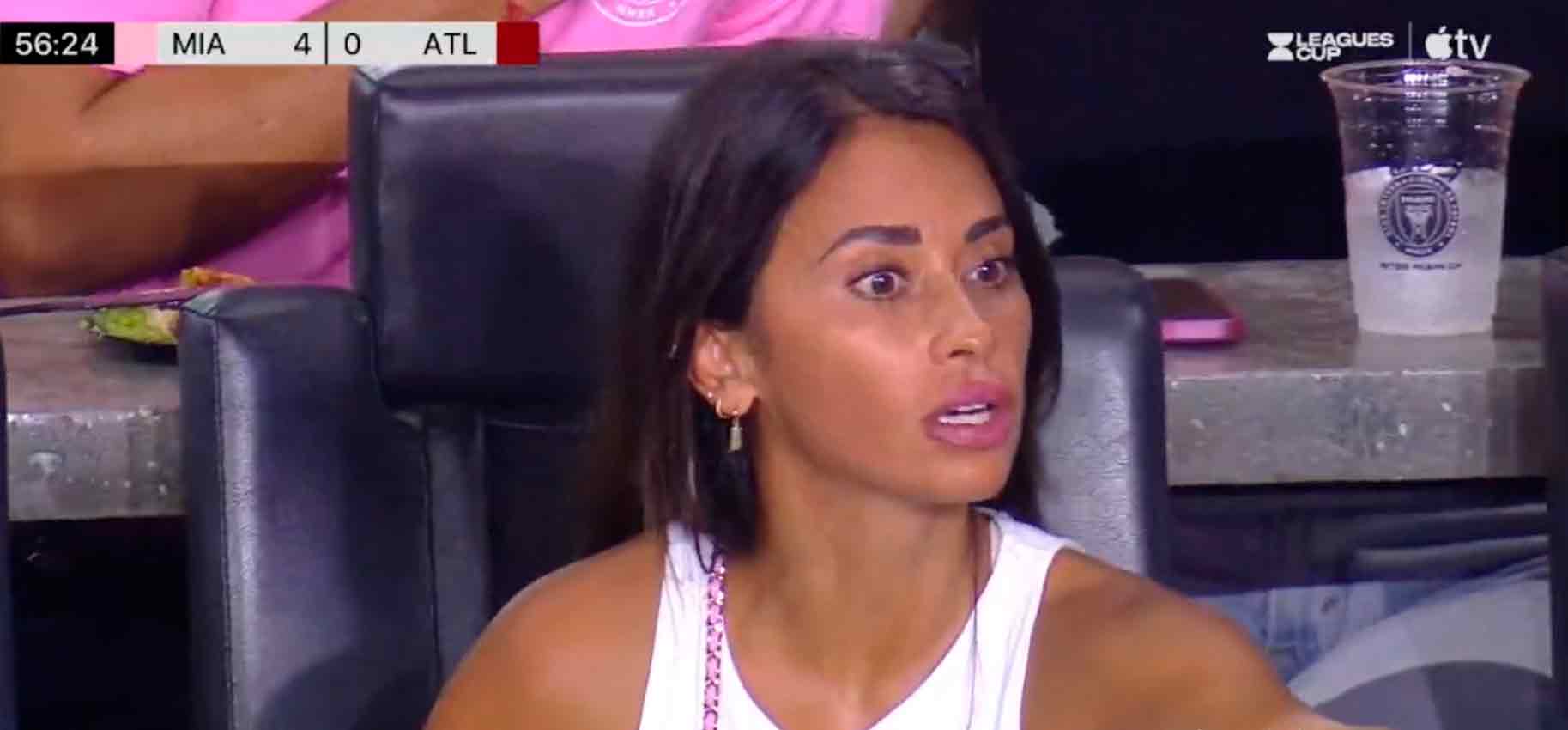 Si bien los chicos miran los partidos de su padre, también son inquietos y quieren moverse, pero Antonella está siempre atenta y los reta como corresponde. Eso pasó durante del partido de este martes entre el Inter Miami y Atlanta United.