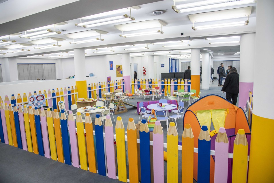 Además de la recepción, el espacio de lactancia y el vestidor, en el centro se ubica el sector de la ludoteca con distintas estaciones, el gran distintivo del lugar, en tanto en el subsuelo se ubican oficinas de los equipos directivos y de gestión, además del Salón de Usos Múltiples, pensado tanto para reuniones de equipos así como un espacio abierto para todas las organizaciones de la ciudad que trabajan en la problemática de las infancias.