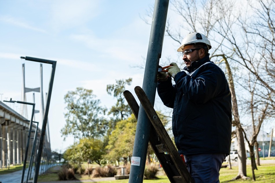 La Municipalidad de Rosario, a través de la Secretaría de Ambiente y Espacio Público realiza tareas de reposición de luminarias led en un sector del Parque de la Cabecera, ubicado en el extremo norte de la ciudad, que fueron robadas y/o vandalizadas.