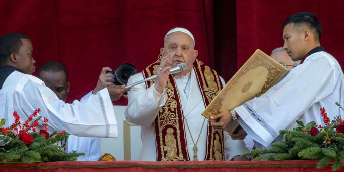 El papa Francisco pidió este miércoles en su tradicional mensaje “urbi et orbi” (a la ciudad y al mundo) que se “callen las armas en la martirizada Ucrania” y recordó el conflicto de Medio Oriente. El Sumo Pontífice de la Iglesia Católica instó a “gestos de diálogo” en vistas a “una paz justa y duradera”, horas después de que Rusia lanzara más de 70 misiles contra la red energética ucraniana en el día de Navidad, según el sitio RFI.