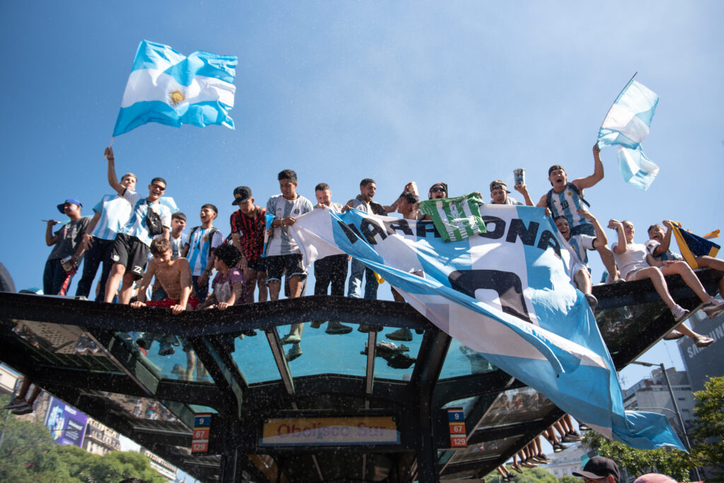 Los otros integrantes de la Scaloneta volaron en helicópteros de la Prefectura Naval, que sobrevolaron la autopista 25 de Mayo, donde había cientos de miles de personas esperando el paso de la caravana mundial, así como la 9 de Julio y el Obelisco, también repletos.