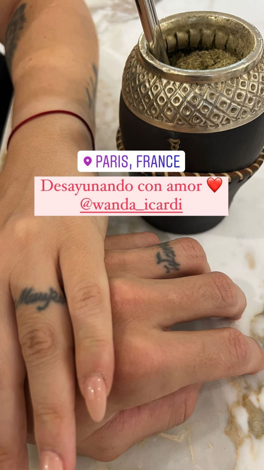 Entre las versiones cruzadas sobre la reconciliación, Mauro Icardi volvió a mostrarse junto a Wanda Nara y en una romántica foto al iniciar el día. La pareja se encuentra viviendo en Francia y si bien trascendió que la relación continúa tensa, el jugador compartió una postal donde se los ve tomado de la mano pero con un importante detalle. Es decir, sin el anillo de casados.
