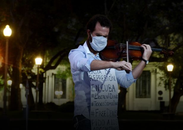 Mariño vive hace cuatro años estoy en Argentina. Decidió militar a partir del asesinato de dos referentes de la disidencia cubana, integrantes del “Movimiento Cristiano de Liberación: “Los conocí a ellos, eran muy pacíficos, serios y humildes. Trabajaban para la libertad de Cuba por cosas básicas como la libertad de expresión, que están secuestradas en Cuba por la dictadura. A partir de ahí sentí la necesidad de vincularme con la disidencia cubana. En esta lucha conocí a mi esposa y decidimos formar un hogar en Argentina”, explicó el violinista.