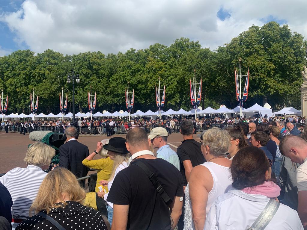“El cajón está puesto sobre una plataforma forrada con una tela violeta, y encima está la corona de la reina. Está permanentemente custodiado por ocho guardias que están constantemente con la vista hacia abajo. La gente pasa muy lentamente pero a ritmo constante y la mayoría hace una reverencia al entrar”, sostuvo.