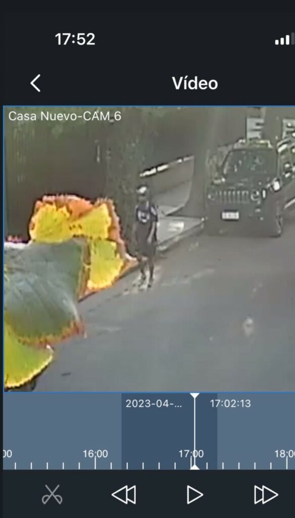 Según se puede observar en las imágenes compartidas por la víctima, un hombre se acerca a la camioneta blanca propiedad de la pareja y toma una valija del rodado. Si bien no se llega a ver bien toda la secuencia por una rama que tapa la toma, se puede divisar que el sujeto se aleja a paso seguro, sin efectuar movimientos que levanten sospecha.