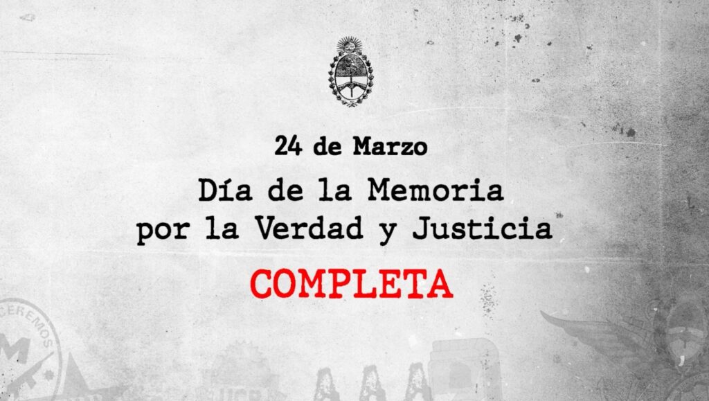El Gobierno nacional difundió en la madrugada de este domingo un video institucional por el Día de la Memoria con la voz y el texto del escritor Agustín Laje, presidente de la Fundación Faro. En el mensaje, la administración de Javier Milei insistió en el concepto de “Memoria completa”, que incluye la condena a los crímenes de Estado durante la última dictadura militar y también a los actos de violencia de organizaciones armadas.