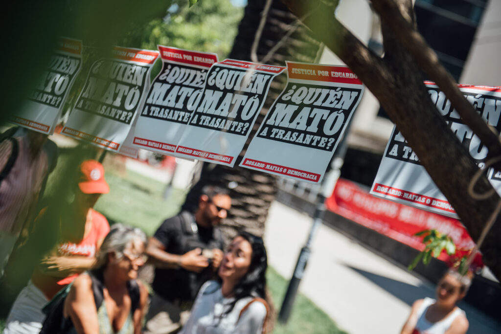 En la primera jornada de debates frente al Tribunal compuesto por Pablo Pinto, Ismael Manfrin y Paola Aguirre, hubo presencia de referentes del arco político, como el diputado nacional Eduardo Toniolli, los diputados provinciales Carlos Del Frade y Lucila De Ponti o la titular del Concejo Municipal, María Eugenia Schmuck. Además, estaban Juan Monteverde, Caren Tepp y otros integrantes de Ciudad Futura, que movilizó a la puerta del Centro de Justicia Penal. Trasante, cabe recordar, había militado en ese espacio y llegó a ocupar una banca en el Concejo por CF.