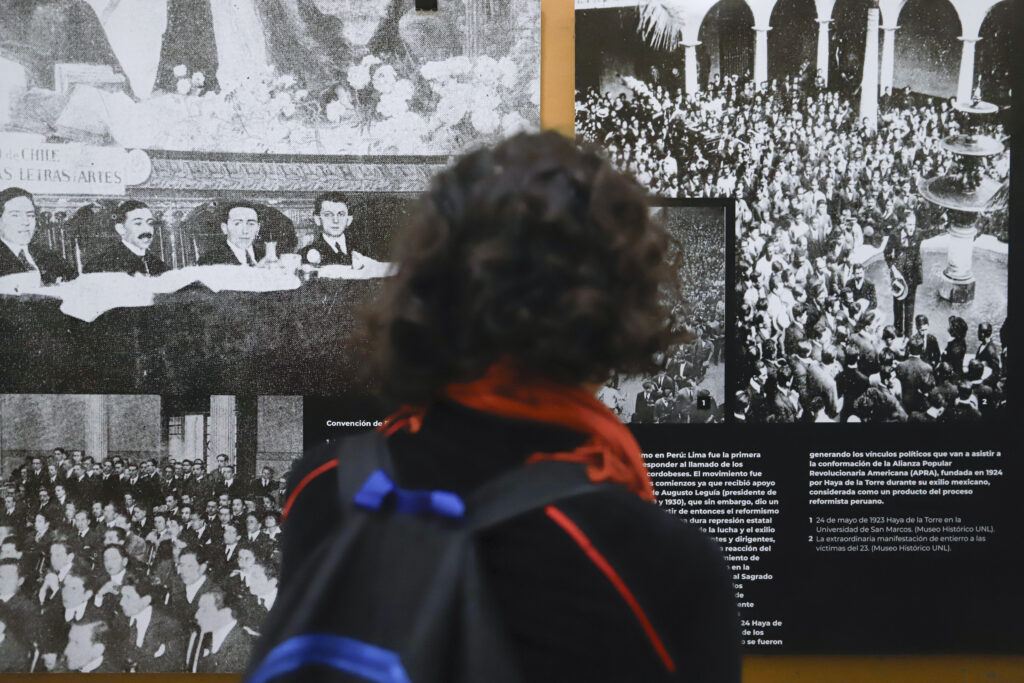 La misma contiene fotos y documentos desde la Reforma de 1918 hasta 2001. A la foto icónica de la toma de la Universidad de Córdoba se suman el Manifiesto Liminar publicado en La Gaceta Universitaria, tapas de revistas, un mapa de las ciudades capitales de la reforma universitaria en América latina y la partitura del himno del estudiante americano, entre otros.