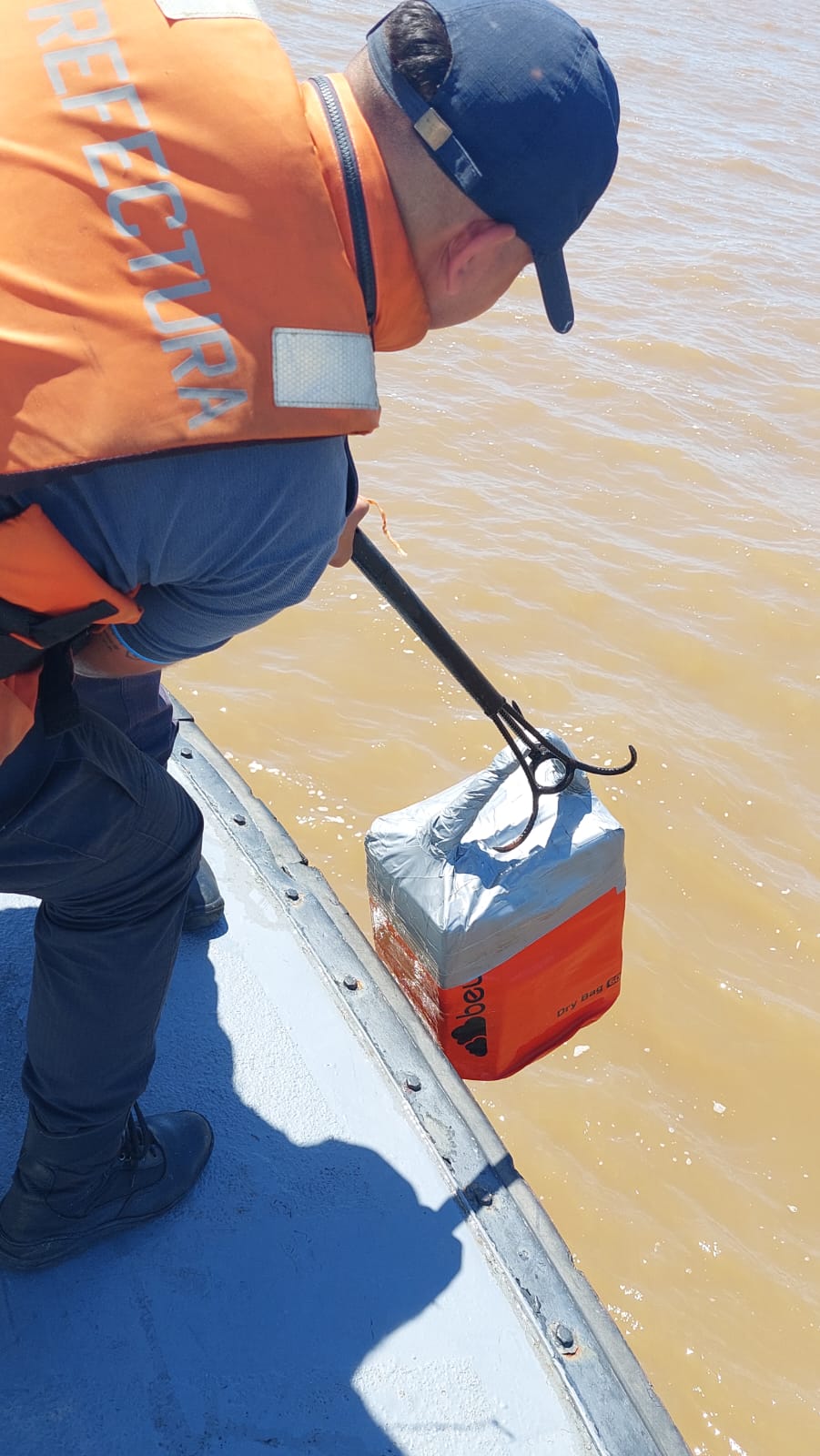 Producto de este despliegue, se detectó un grupo de siete bultos flotantes que contenían la misma droga.
