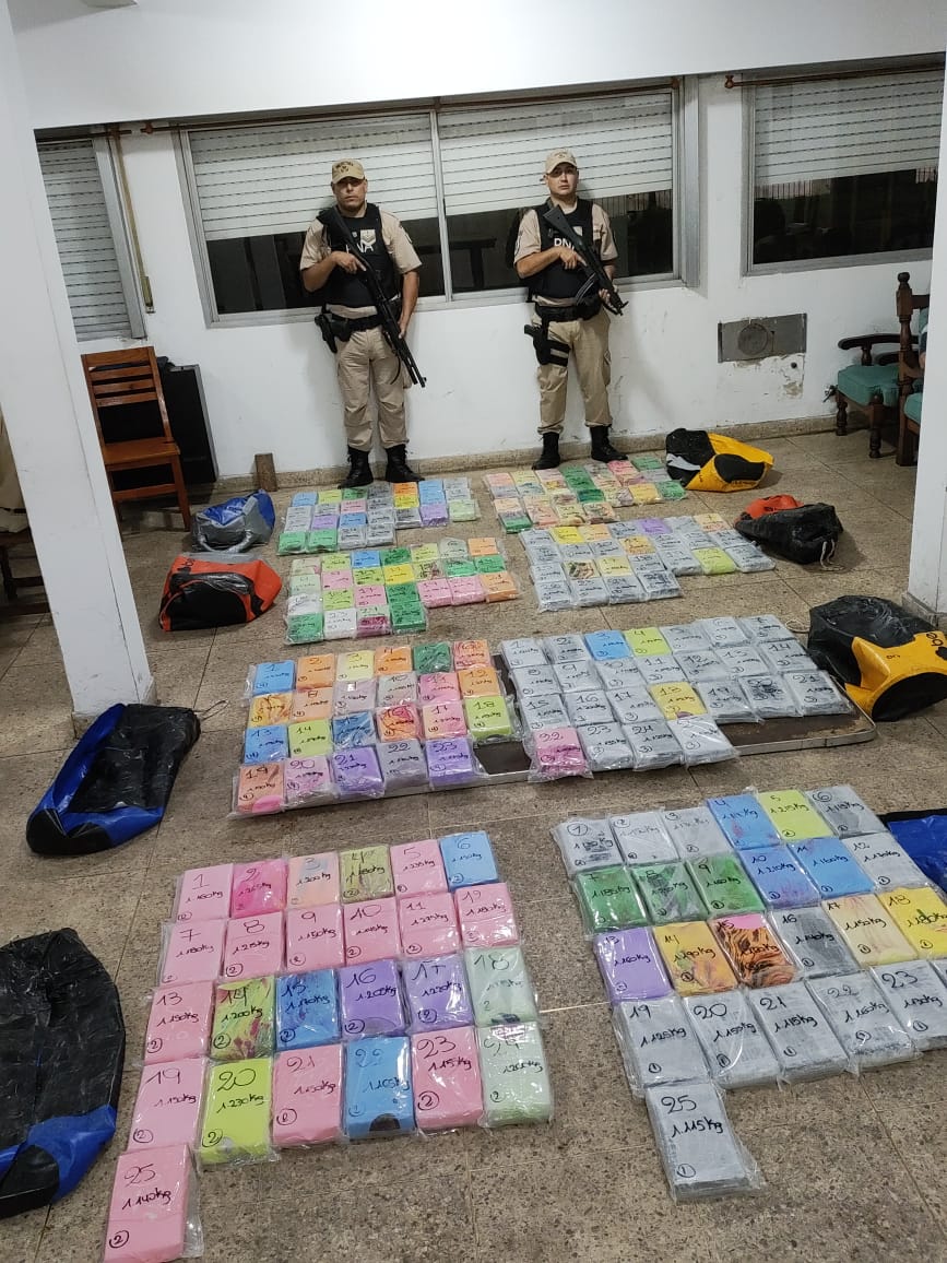 Advertidos por estas pesquisas, la fuerza dispuso que el guardacostas “Lago Colhue” se aventure al lugar para frustrar todo despliegue del crimen organizado. Una vez allí, el personal policial detectó inicialmente dos paquetes naranjas a la deriva.