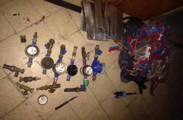 En el procedimiento realizado por la brigada Motorizada, cayó Cristian M. con seis metros de cables, seis medidores de agua, siete acoples metálicos, cuatro soportes de aluminio y un cuchillo que había usado para sustraer todos los elementos.