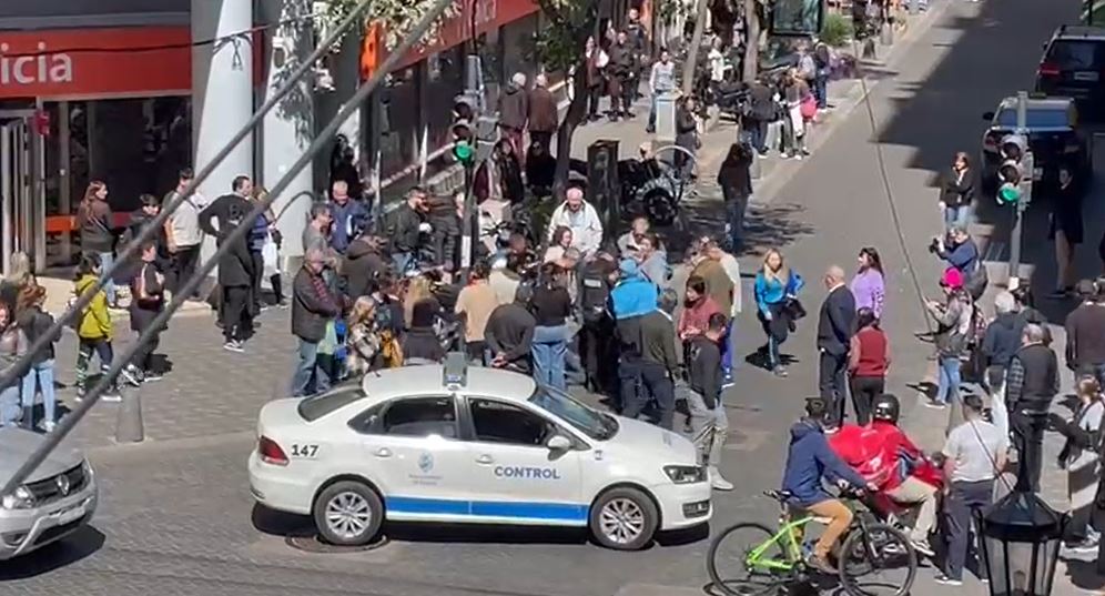 El episodio ocurrió minutos antes de las 13:00 en la esquina de Santa Fe y Sarmiento. Según las primeras informaciones, un hombre asaltó un local de bijouterie y, al salir del comercio, empujó a una mujer al suelo de la vereda.