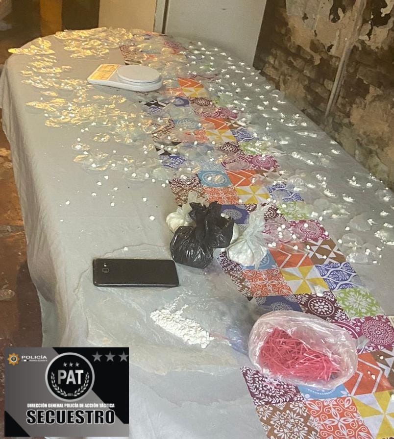 Ante esto, los efectivos de la Policía de Acción Táctica, se dirigieron al domicilio en cuestión y encontraron en su interior diferentes envoltorios de nylon con sustancias de color blanca similar a cocaína y demás materiales para la confección de envoltorios fraccionados, lo que a simple vista se observa que se encontraban en preparación.