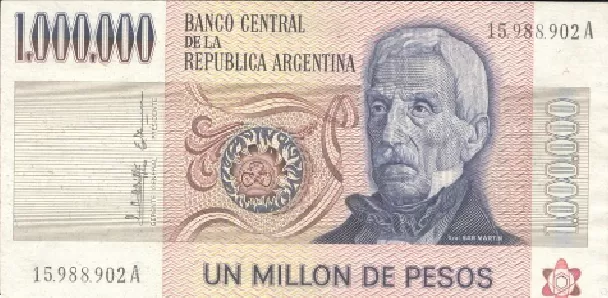 En el repaso, la consultora que dirige Di Pace advierte que el billete argentino de mayor denominación que más perdió su valor fue el de un millón de Pesos Ley: empezó a circular el 25 de noviembre de 1981 y 48 meses después pasó a valer menos de $ 1500.