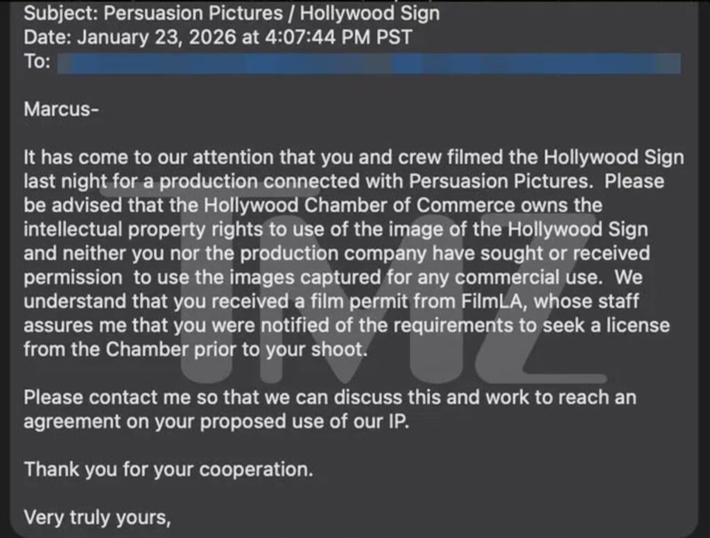 Sin embargo, esta acción podría no salirle gratis. Aunque el equipo de producción habría obtenido un permiso para filmar en el área cercana al letrero, no contaban con autorización para escalar la estructura ni tocarla directamente, lo cual está prohibido por la Cámara de Comercio de Hollywood, que administra el icónico cartel.