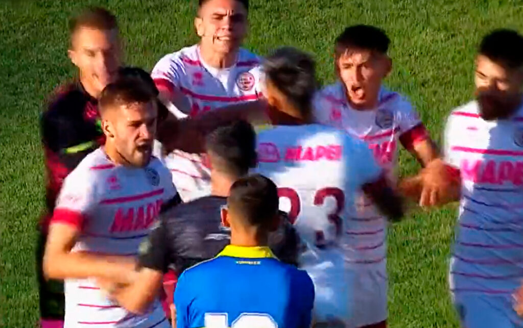 Estas tarjetas rojas terminó en un escándalo ya que hubo empujones e insultos contra el árbitro. Este tuvo que ser resguardado por efectivos de la policía y terminó el encuentro dos minutos antes de que se cumpliera el tiempo reglamentario.