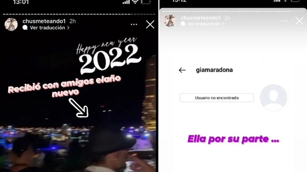 En medio de los rumores, el ex futbolista fue a un boliche con amigos en un boliche de Miami, Estados Unidos, borró las fotos que tenía con la hija de Diego en sus redes sociales y subió en sus historias de Instagram una seguidilla de videos desde un barco, recibiendo el año nuevo y disfrutando de los fuegos artificiales.