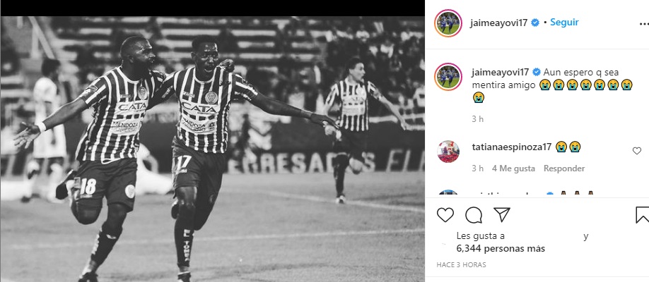La primera reacción del ecuatoriano en las redes sociales fue subir una foto junto a su excompañero del Tomba con la leyenda: “Aún espero que sea mentira, amigo”.