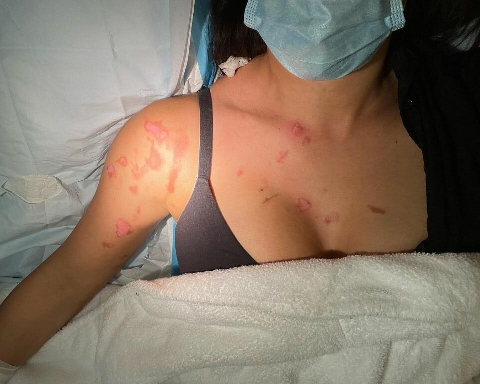 Recordando su accidente doméstico, Eva De Dominici publicó fotos de las heridas que provocó en su cuerpo la explosión de un artefacto mientras cocinaba en su casa.