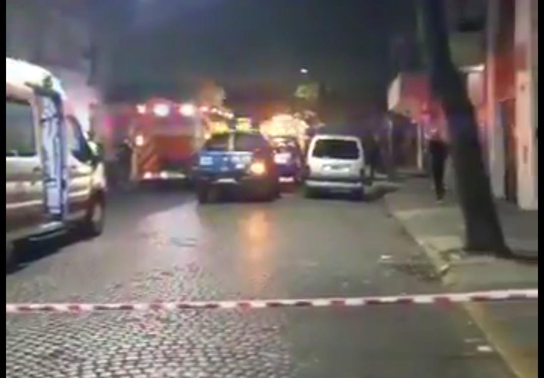 La calle fue cortada por los vehículos de asistencia, mientras que los vecinos bajaron hacia la calzada mientras los empleados trabajan en el foco.