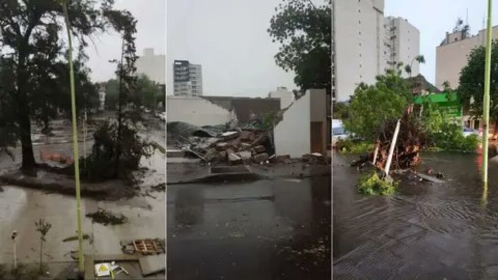 A través de varias imágenes que se conocieron en las redes sociales, se pudo ver a distintas calles de la zonas completamente inundadas, arboles caídos, y hasta incluso autos aplastados por algún elemento que le aterrizó violentamente encima.