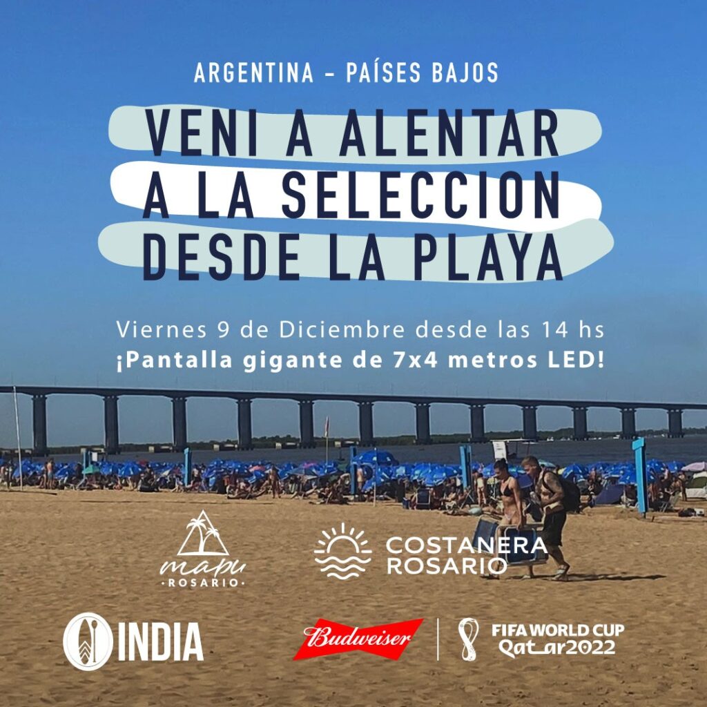 Será este viernes 9 de diciembre, desde las 14 hs. Allí habrá una pantalla gigante de 7×4 metros LED, cerveza, gastronomía, DJ SET todo frente al río. Se podrá disfrutar la previa, el partido y un post partido inolvidable con música en la playa.
