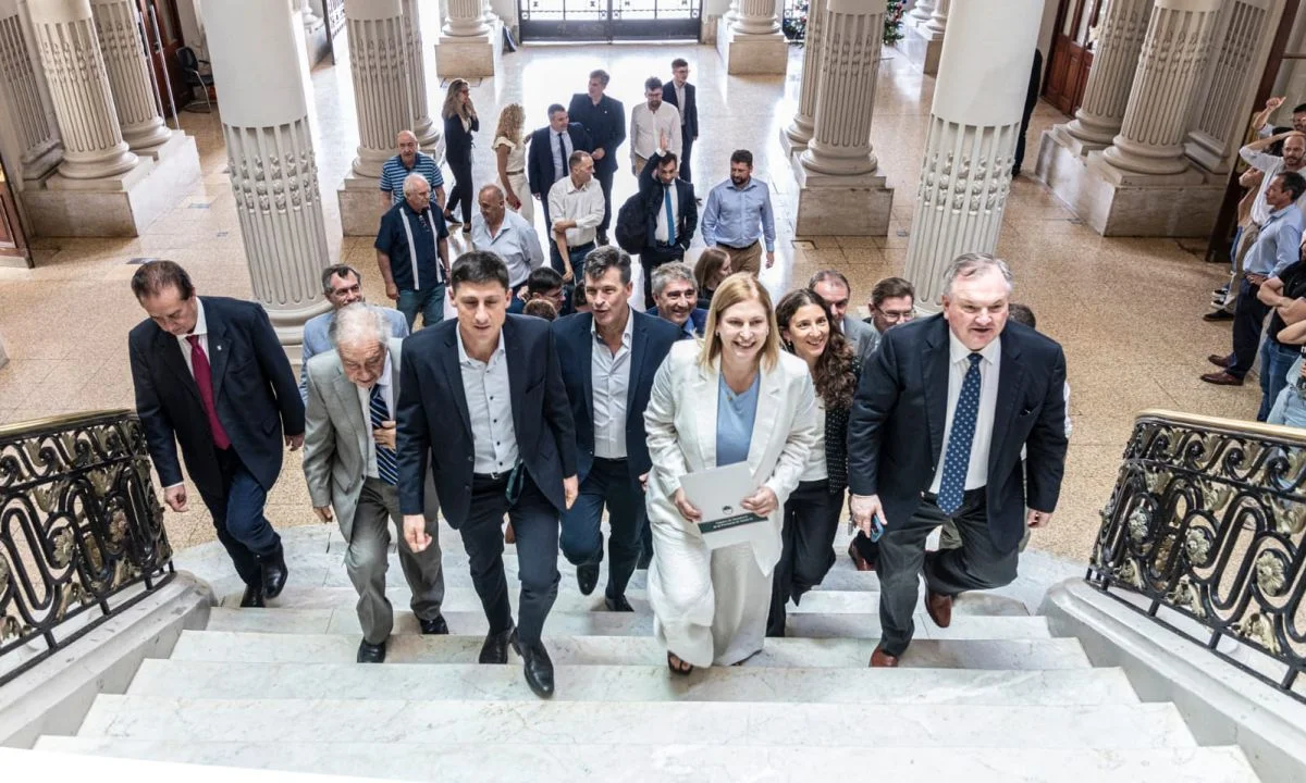 Finalizada la sesión, una comitiva de senadores reformistas encabezada por la Vicegobernadora Gisela Scaglia y el Presidente Provincial del Senado Felipe Michlig concurrieron a Casa de Gobierno en donde le entregaron el trascendental instrumento legal al Gobernador Maximiliano Pullaro, a los fines de su promulgación, publicación y aplicación.