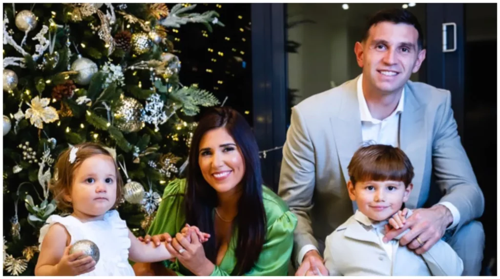 El jugador del Aston Villa fue el primer futbolista argentino en publicar en sus redes sociales la foto junto a su mujer, Mandinha, y sus hijos, Santino y Ava.