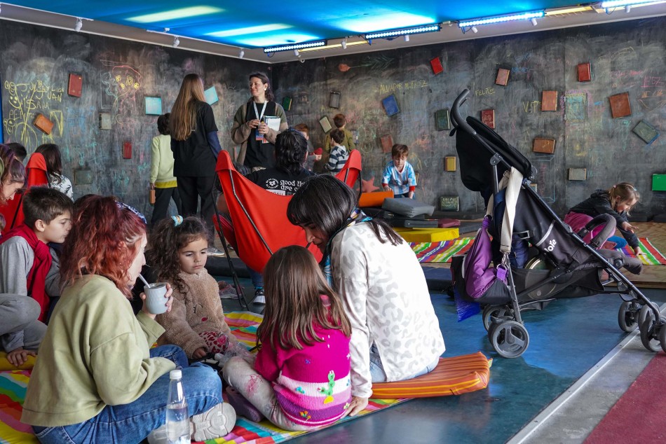 Así, en esta edición se amplió el espacio a dos grandes salas con libros al alcance de la mano para todas las edades y gustos: desde los de tela para las y los más pequeños, hasta libros de cómics, historietas, libros con muchas ilustraciones y también libros con mucho texto. Un entorno de almohadones, alfombras, paredes para escribir y trepar libros se encuentra disponible cada día para que niñas y niños exploren y se sumerjan -con todo el cuerpo- en nuevas historias.