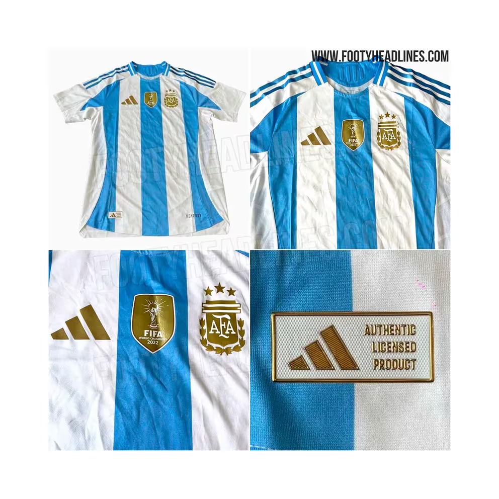 La nueva camiseta es visiblemente diferente respecto a la utilizada en el Mundial, regresando a las bases de su estampado con las tiras celestes y blancas lisas y varios detalles en dorado, como el sol en el cuello, al igual que el escudo de la AFA y la marca de la prenda. El cuello seguirá siendo redondo, con las tres tiras características en los hombros, de color celeste.