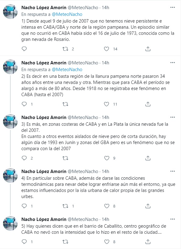 En la noche del domingo, el meteorólogo Nacho López Amorín, adelantó que “más allá del deseo de las nevadas, se espera tanto para mañana como para el martes que sigan las bajas temperaturas en muchas provincias por lo que rige advertencia oficial”.