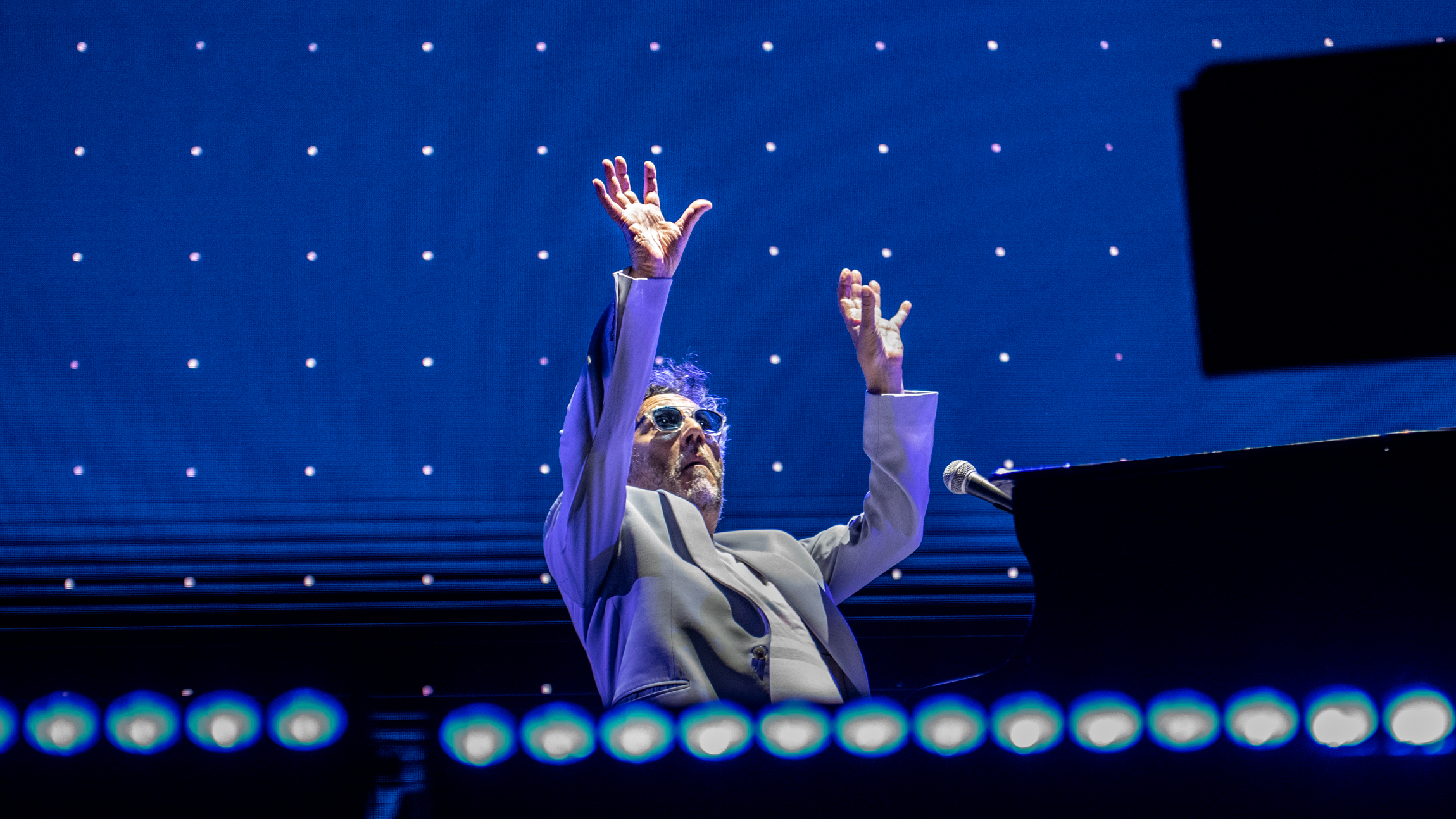 El show empezó a las 21:23. Empezó con un fade-in suave de cuerdas de teclados amables pero sin vueltas, paseando de SOL a DO como le corresponde a la canción que abre el disco y lleva su nombre. El escenario se puso rojo, todo era pantallas, las plataformas donde se paraban los músicos y sus instrumentos era pantalla, el fondo del escenario era pantalla. Nadie dudaba que se trataba de esa canción que hace 30 años decía que “nadie puede ni nadie debe vivir sin amor”, pero cuando empezó la maquinita a hacer la base rítmica se festejó como un gol, se festejó porque desde ahí y hasta el final del show era el más deseado de los deseos, pero sobre todo se festejó porque anoche en el Anfiteatro también se respiró densa la necesidad de festejar algo; gritar goles, gritar estribillos, sacar a respirar a la bestia adormilada que te mira y refunfuña en el espejo del ascensor.