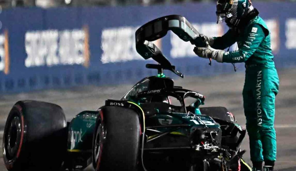 ¡FUERTE CHOQUE DE STROLL! El piloto de Aston Martin mordió el piano, golpeó contra el muro y terminó destrozando su monoplaza. ¡Hay bandera roja en Singapur!