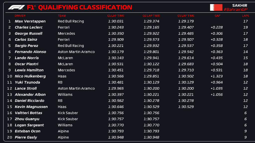 Max Verstappen, de Red Bull, consiguió la pole position para el Gran Premio de Bahréin en una reñida primera sesión de clasificación de la temporada 2024, superando a su rival de Ferrari, Charles Leclerc, y a George Russell, de Mercedes, por el primer puesto.