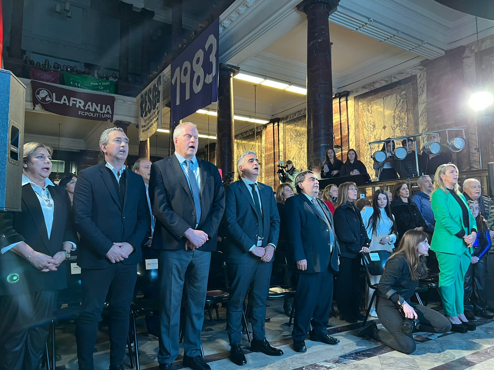 En la tarde del lunes, pasadas las 18 horas, se produjo en la Universidad Nacional de Rosario (UNR) la asunción de autoridades. El rector Franco Bartolacci junto a su vice rector Darío Masía renovaron su mandato y asumen así su segundo mandato en la institución que irá hasta 2028. En dicha ceremonia, destacó el cantautor argentino Jairo, que entonó las estrofas del Himno Nacional Argentino.