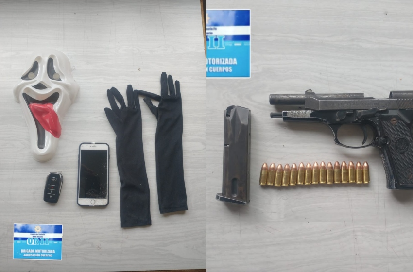 Mientras escapaban a pie, se treparon en diferentes techos y efectivos policiales lograron detener a un hombre en este proceso. Tenía una pistola Pietro Bereta además de una máscara para festejar Halloween.