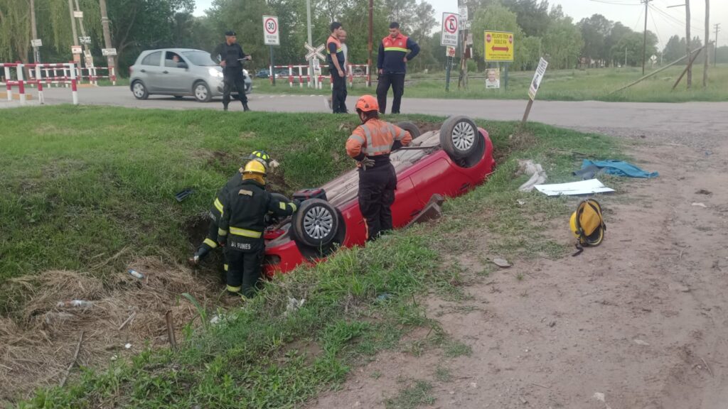 En las calles San Sebastián y Tilcara, de la ciudad de Roldán volcó un auto, en donde los ocupantes del vehículo volcado estaban a salvo.
