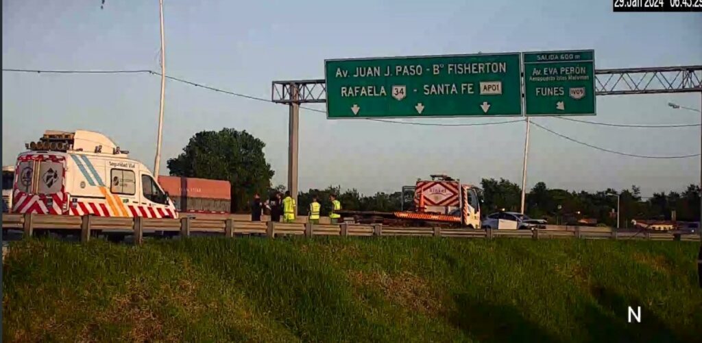 La mañana de lunes comenzó con un fuerte choque en la Avenida Circunvalación en el sector entre Mendoza y Pellegrini. Allí, un vehículo impactó contra el muro divisorio de la vía y contra una columna.
