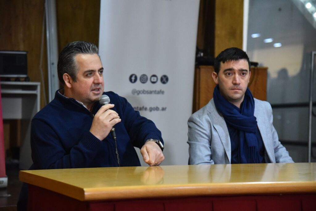 El ministro de Justicia y Seguridad de Santa Fe, Pablo Cococcioni, junto al secretario de Gestión de Registros, Matías Figueroa Escauriza, anunciaron este viernes las acciones judiciales que el Gobierno Provincial impulsa para impedir que se restituyan bienes decomisados a un narcotraficante condenado.