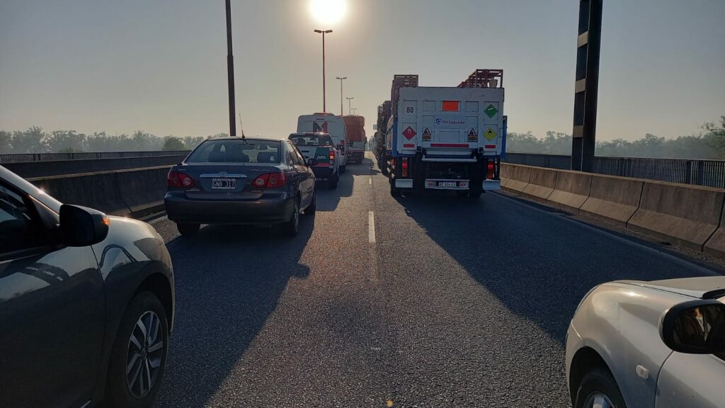 Desde la Agencia Provincial de Seguridad Vial informaron que se realizan desvíos de tránsito pesado en la cabecera del puente “debido a un siniestro entre camiones en jurisdicción de Entre Ríos”.